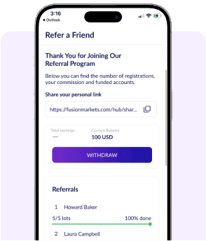 Withdraw your rewards directly through the Fusion Markets Clienthub, under the ‘Refer a Friend’ tab.